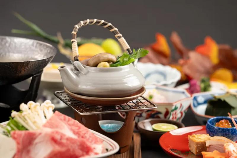 チェックイン時には香り豊かな「柿の葉茶」を、夕食デザートでは奈良県産柿を語り部の解説メモとともにご用意。お部屋には「柿最中」、チェックアウト時には「平宗・柿の葉ずし(3個入り)」をプレゼントし、五感で秋の魅力を味わえます。